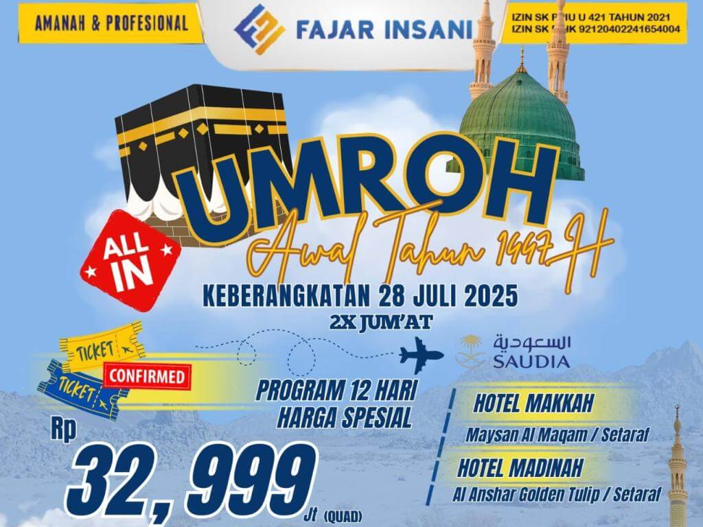 - Harga dan jadwal Sewaktu-waktu Bisa Berubah Mengikuti Kebijakan Pemerintah Berkaitan Dengan Biaya Komponen Umroh ( Vendor Tiket Maskapai, Vendor Hotel Dll )